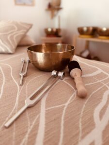 Les bols font partie d’un ensemble de pratiques sonores et corporelles proposées au cabinet .